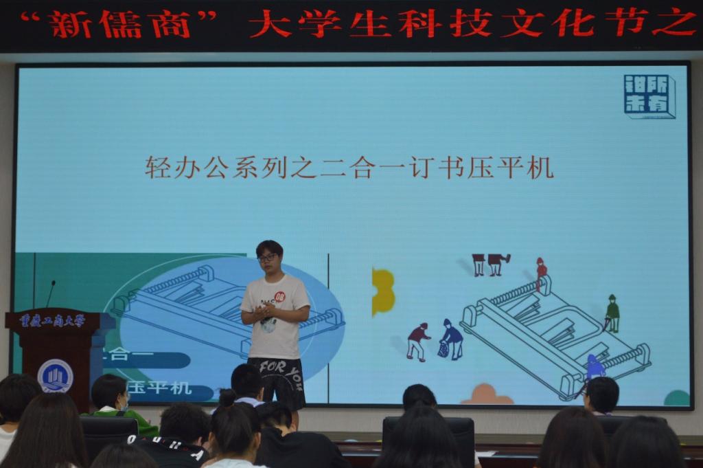 本次比赛共收到作品121份作品,经过初赛的严格筛选,共有8支团队脱颖而出,进入决赛。决赛项目具有创新性和实用性,有轻办公系列的二合一订书压平机,还有为同学服务的Games赛事通,更有分体式可循环快递箱等技术创新的便民项目。决赛中,各支队伍准备充分,围绕产品或服务特性、市场分析、商业模式、财务分析、风险防范、发展愿景等方面进行项目展示,思路清晰,有理有据。项目答辩环节,评委老师们结合参赛队伍的作品特点与涉及的金融投资相关专业性问题进行提问,选手们积极思考和回应,彰显出较好的思辨精神和专业素养。答辩中,也为进一步完善项目提供了改进的方向和切实可行的建议意见。经过紧张而精彩的角逐,最后“钳所未有队”与“赛事通小队”荣获一等奖。