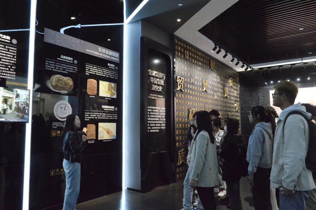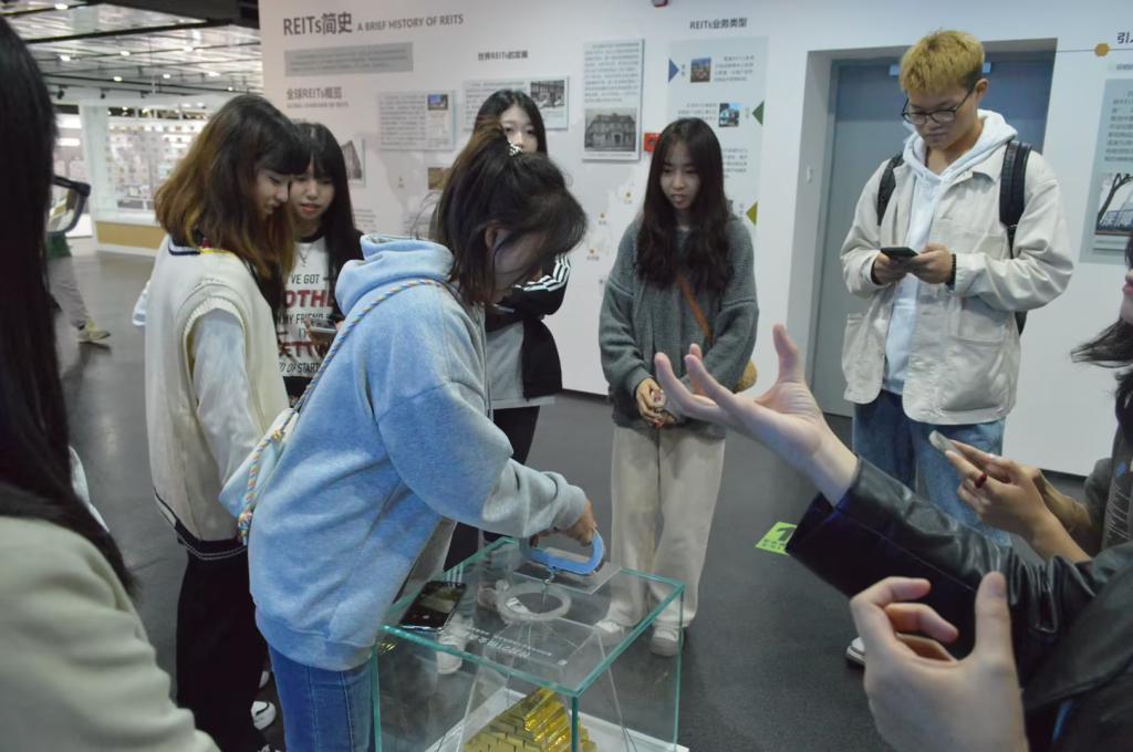 同时,为了增添参观学习的趣味性,此次活动添加了许多互动环节。例如在参观金融的力量时,讲解员先是带领同学们参观由博物馆1:1还原的古代账房先生工作时的场景,再让同学们亲自上手感受了一百万纸币以及金条的重量,最后带领同学们了解了金融与艺术、金融与科技的结合以及模拟市场,让金融的“力量”更直观形象地展现出来。