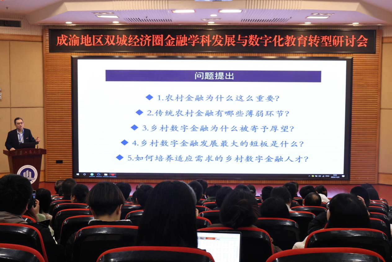 重庆工商大学校长温涛教授以《乡村数字金融成长与人才培养改革创新》为题演讲。他以农村金融的重要性为切入点,从微观机制难以有效对接现代农业发展需求、体系不均衡导致服务产业发展的功能不健全、唯抵押担保格局未破解导致融资规模难以提升、内生机制弱化导致合作金融信息优势难以有效发挥、统筹施策不力导致金融监管空白和风险隐患等五个层面,深入分析传统农村金融存在的薄弱环节。他提出,借助数字技术应运而生的数字金融模式是化解传统农村金融诸多难点与痛点的可行性方案。同时,他指出,现有乡村数字金融发展最大的短板是“数字鸿沟”导致乡村数字金融产品服务接受度不高、人才短缺导致乡村数字金融产品及风控技术研发不足。他强调,为了有效化解培养适应需求的乡村数字金融人才匮乏问题,高校要以教育评价改革牵引人才培养改革,加快“计算机类+金融保险类+农业农林管理类”学科专业融合发展。以西部金融中心建设和重庆数字金融发展为契机,大力培养乡村数字金融人才,为全面推进乡村振兴、加快农业强国建设的关键核心领域优先填补人才缺口。