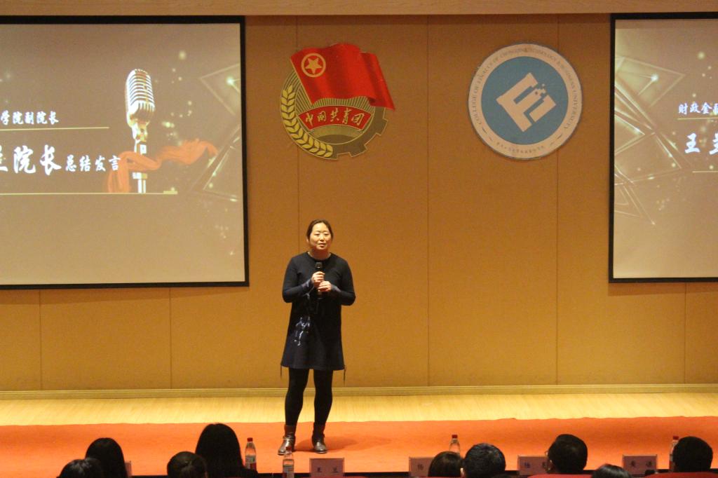 随后,获奖选手代表陈露、杜朝阳向与会人员分享了他们在营销过程中的经验和体会,让观众感受到他们一路的成长与磨砺。在抽奖环节后,王兰副院长作出总结致辞,她用“Surprise、Amazing、Gorgeous”三个英文单词概括了此次总结暨表彰大会,赞许了选手们在赛事中的坚持与付出,肯定了财金学院多元化校园生活建设的成果,表达了对莘莘学子未来发展的祝福并再次感谢重庆银行提供的宝贵的实践平台。
