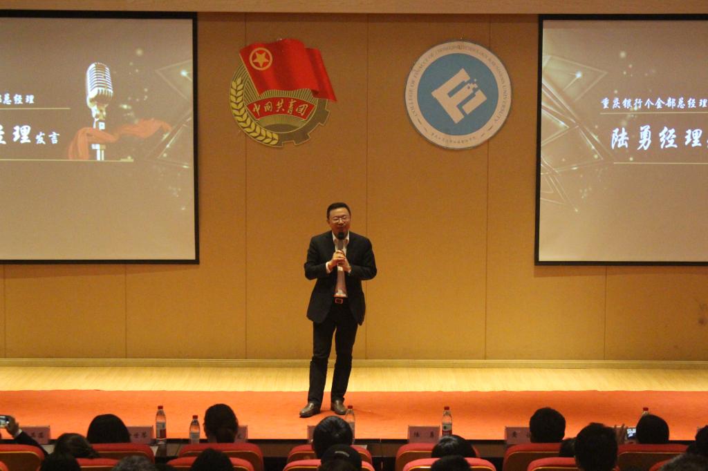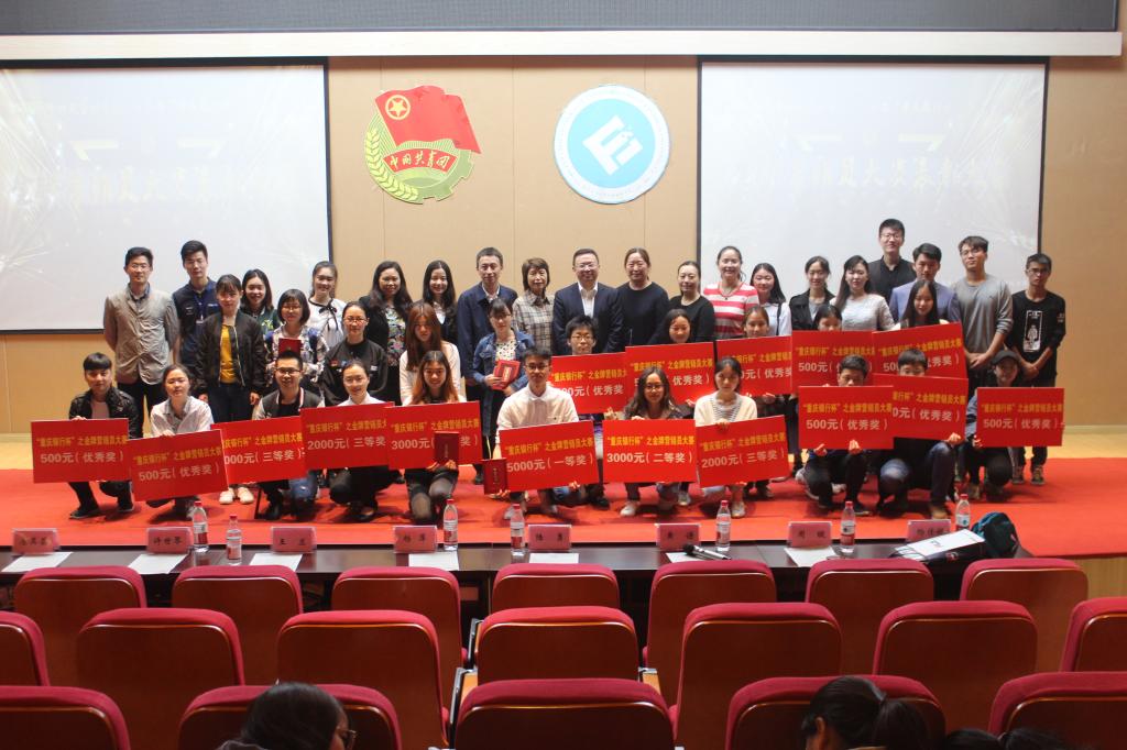 财金舞蹈队以婀娜曼妙的舞姿为大会拉开了帷幕,与会人员一同在总结视频中回顾选手们一路走来的优秀表现与酸甜苦辣,三个月的营销历程历历在目。随后,学院党委副书记黄谦发表讲话,表达了对重庆银行以及学院各领导大力支持的感谢,祝贺参赛选手在比赛中取得优异成绩,他还强调此类学科竞赛为学院金融专业的长足发展有重要意义;随后,陆勇先生在发言中肯定了重庆银行与财金学院架构实践桥梁的意义并对各参赛选手在重庆银行各营业网点的优异表现给予高度评价,感谢他们的辛勤付出为重庆银行年度业绩奠定了良好基础。在激动人心的颁奖环节,况娴、周悦等10名同学获得优秀奖;曾永家左、秦雨凡、蔡进获得三等奖;李璨婷、幸夕获得二等奖;杜朝阳凭借出众的营销技能和坚持不懈的精神勇夺大赛冠军。