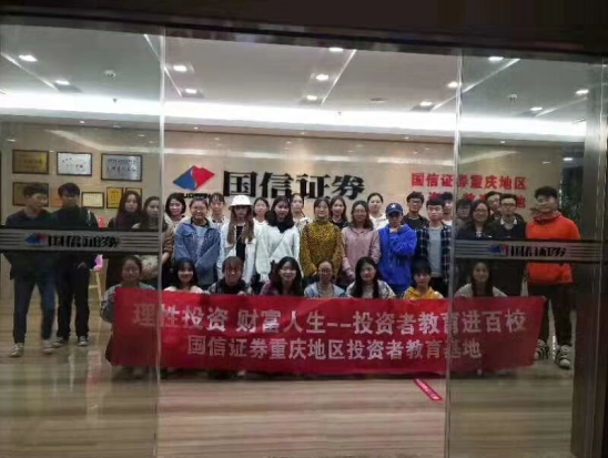 秉持着要把所学知识具体化的理念,重庆工商大学金融证券协会的34位同学于11月10日下午14:30,近距离走进国信证券重庆分公司投资者教育基地,与专业的证券从业人员开启了一场与证券知识的美好邂逅。