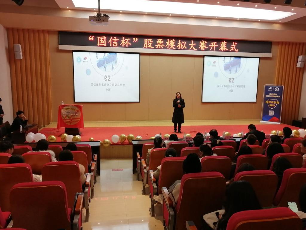 身处千年未有之大变局之中,面对金融全球化急速发展, AI时代导向的经济发展变化。基于对大学生的多元培养,同时响应号召培养复合型金融人才,重庆工商大学携手国信证券重庆分公司,在这个冬日里为大家带来了一次酣畅淋漓的财经思维碰撞,一场兼具趣味性与务实性的股票模拟实操体验,为在校的大学生提供了一次近距离接触新时代金融投资的新兴内涵的教育机会。
